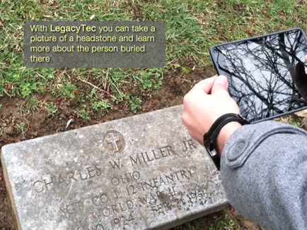 The groundbreaking LegacyTec Technology that allows you to search records simply by taking a picture of a headstone. This allows you to find information about the people buried there simply by taking a picture. And if after you take the picture and there is no record for it already on BillionGraves, it will give you the option to upload it to BillionGraves right then.